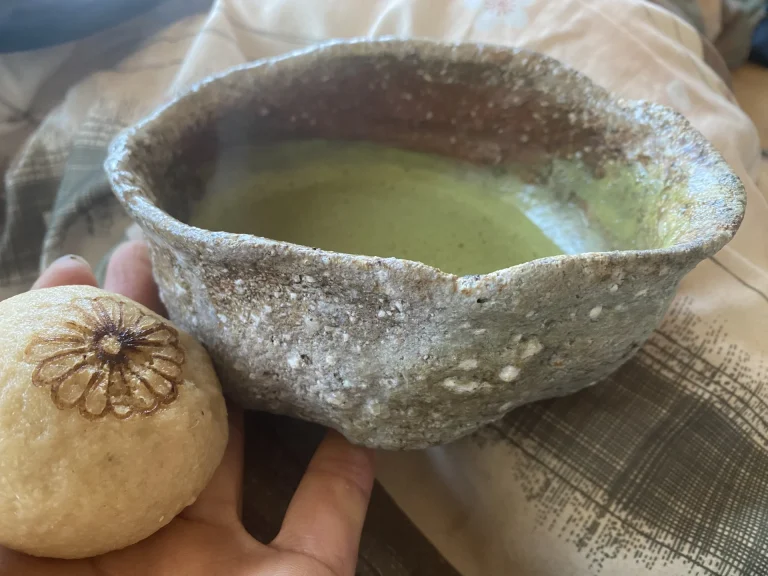 信楽焼茶碗と薯蕷饅頭