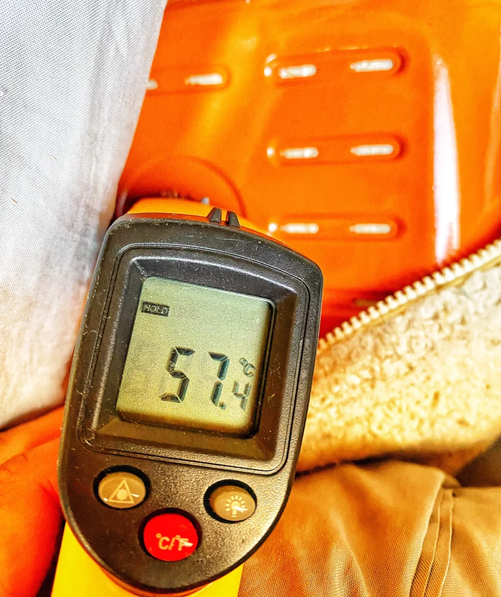 豆炭あんか、24h過ぎてもこんなに激アツ。