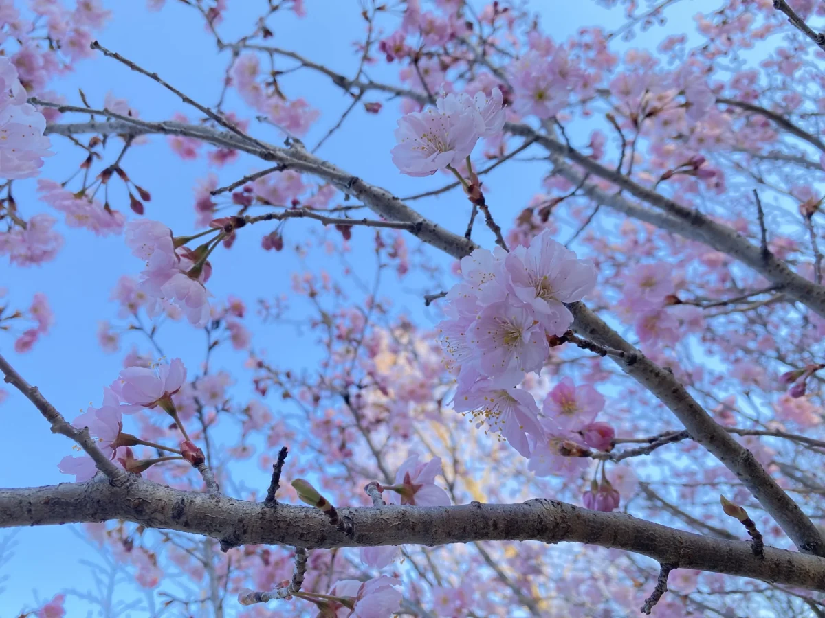 梅と一緒に咲いてる早咲きの桜は